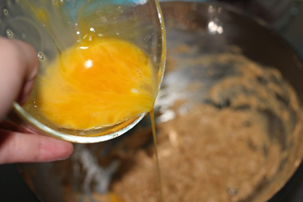 4.红糖在加入黄油之前最好拿勺子压散,不然容易结成特别硬的小块,不容易搅拌开。