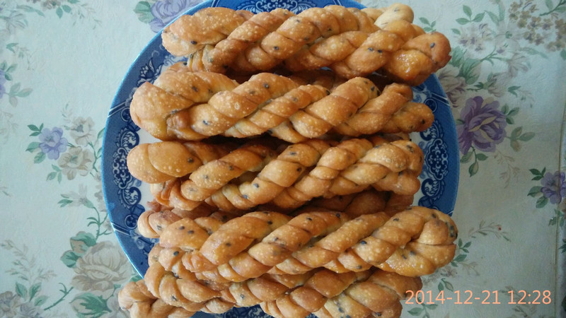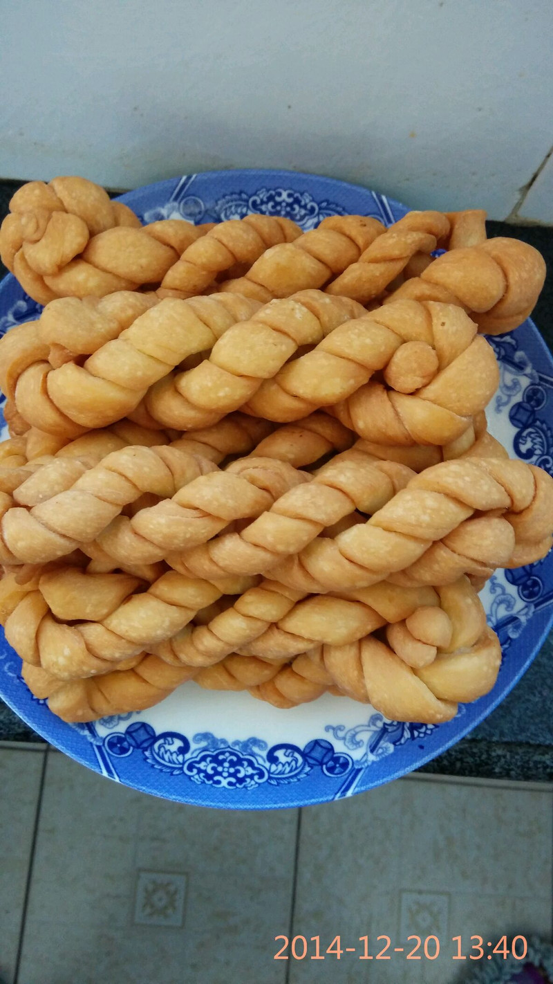 以前做出来的麻花,口感脆梗,吃口欠点;这是我的改良版的配方,口感外酥脆内柔软,吃口微甜,真的不错。标准的搓绳麻花要达到上足七股劲哟,炸制出来的颜色金黄色,中间要有镂空,才是完美的作品。