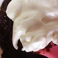 取三分之一与巧克力蛋黄糊切拌均匀,再倒回蛋白霜中拌匀。