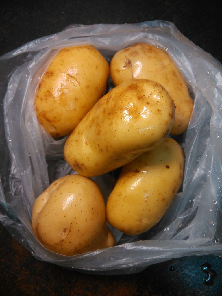 昨晚上发完礼物又饿了,回到寝室里面去就想吃点暖和的东西慰藉一下凉成一坨的胃,刚好几天前买的土豆还剩下几个,就想起了深夜食堂的土豆泥沙拉,我这个人比较懒,尤其是天冷的冻手冻脚到你都不想动手动脚的时候,于是就用了微波炉,连锅也不用翻出来(你说我成天要小心谨慎防止寝室阿姨查违章电器容易么我……么我……),好简单!