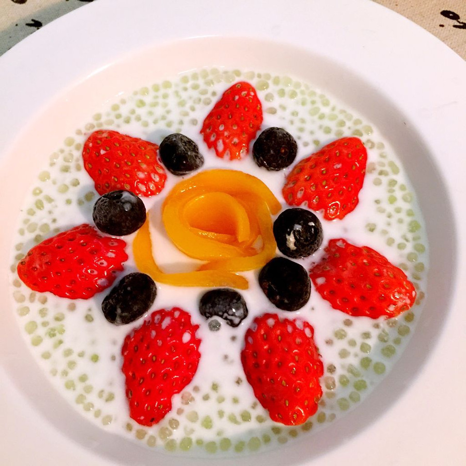 用了3种水果加在西米露里,甜甜酸酸的口感很丰富哦!