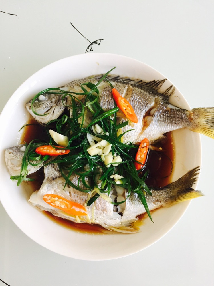 小米椒可用可不用,我是拿来配点颜色的,没榨油的不会辣。蒸的时候放葱白是为了增加香味。葱丝切的时候切的越细就卷的越好看。记得蒸鱼5分钟即可,鱼眼珠掉出来即可了,不然鱼肉变老了就不好看了。