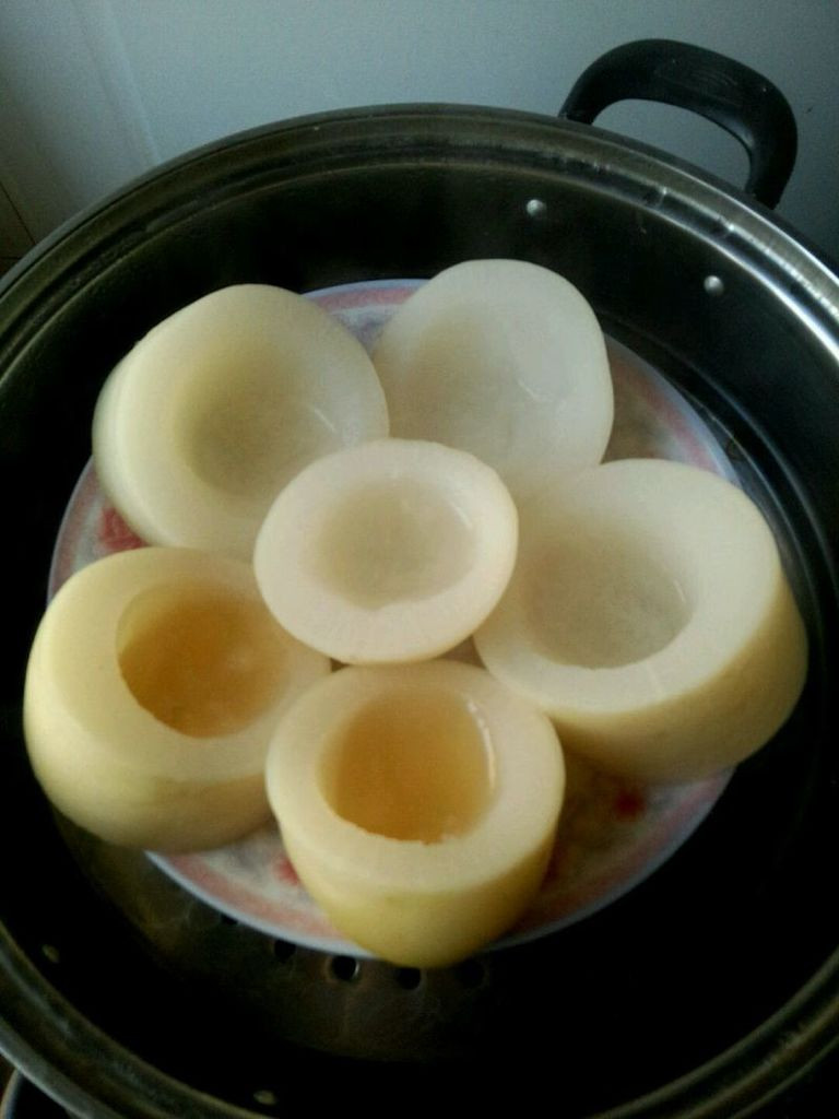 最近感冒加咳嗽,连觉都睡不好!所以做个白萝卜盅吃。做了两种,一种放蜂蜜,一种放冰糖~