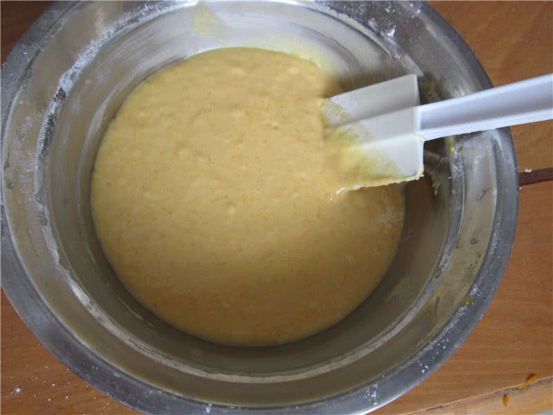 3.搅拌面糊时只须拌至无干粉即可不用过多翻拌。