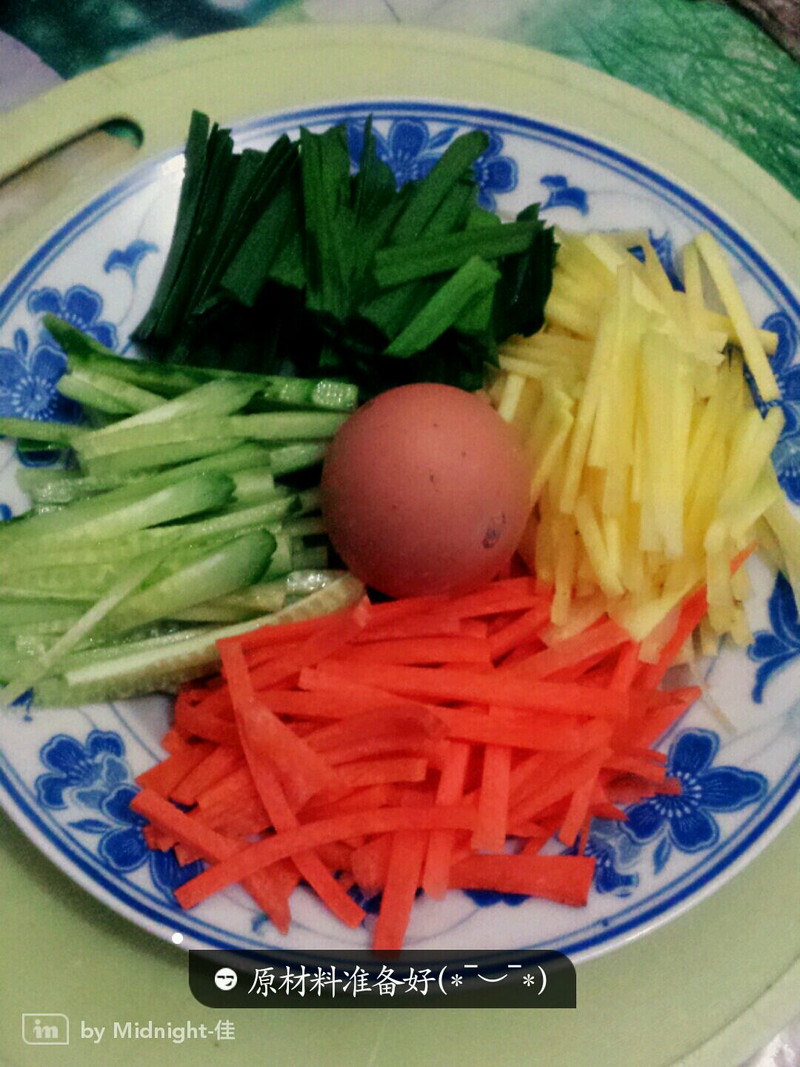如果有芝麻和花生碎,味道会更好。煎蛋喜欢全熟就煎全熟,我煎的单面。家里没豆芽,所以没放。