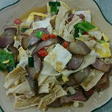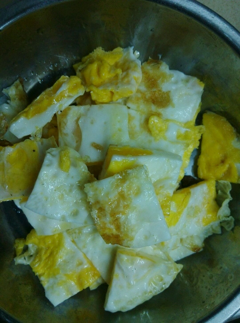 腐竹用开水适当的泡半软半干。鸡蛋平时吃早餐怎样煎就怎样煎。老嫩适中就可以