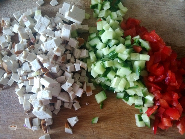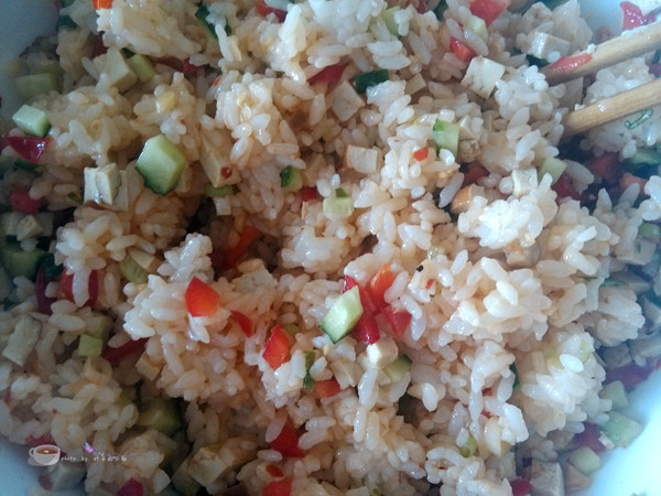 米饭里添加了鸡蛋、黄瓜、豆干,营养更丰富,味觉更有层次,香而不腻,用蛋糕磨具刻成花朵状,大大增添视觉的美感,用这个米饭饼配上一杯牛奶,是一份非常美味的营养早餐。我家宝宝吃完早餐后,还拿了一块去一边看电视一边当零食吃。心动了吗,来行动吧,来一起看看剩米饭是怎么华丽转身的......