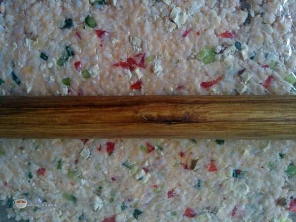 三、用擀面杖要多擀一会,使米饭和其他材料充分融合;