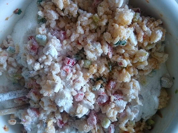 二、加入糯米粉后要用手戴上一次性塑料手套捏一捏,使其充分粘连;
