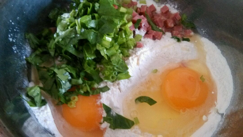 红肠菠菜鸡蛋饼(美味营养早餐)的做法