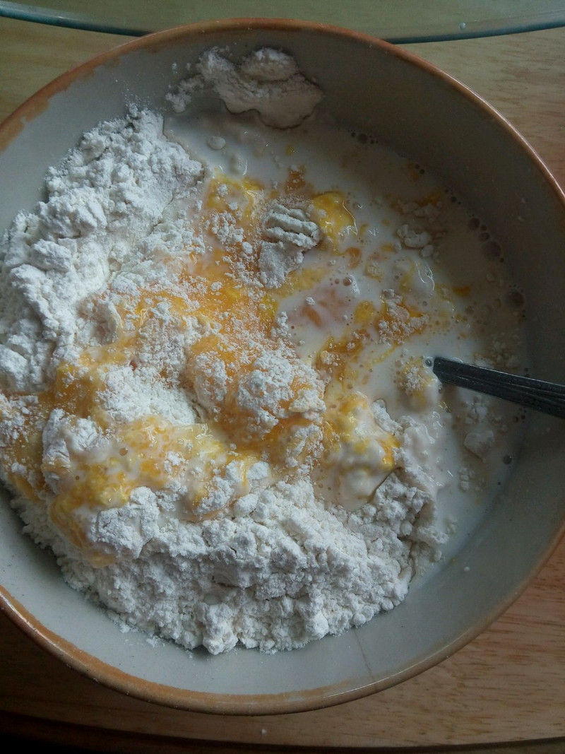 打蛋清是要大一点的容器,因为打了会多起来,最好是用打蛋器朝一个方向不停的打,打成膏状;食材比例大约是:鸡蛋(枚)、白糖(勺)、牛奶(勺)、面粉(勺),1:1.5:1:1,也可适量多放点;更多食谱可关注微信公众号“厨房里的秘密”第一时间获取。