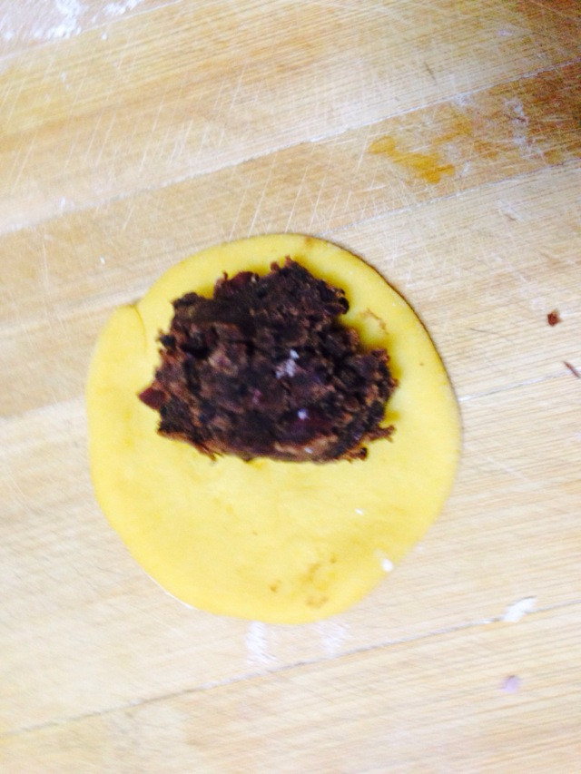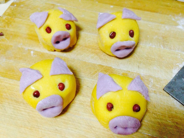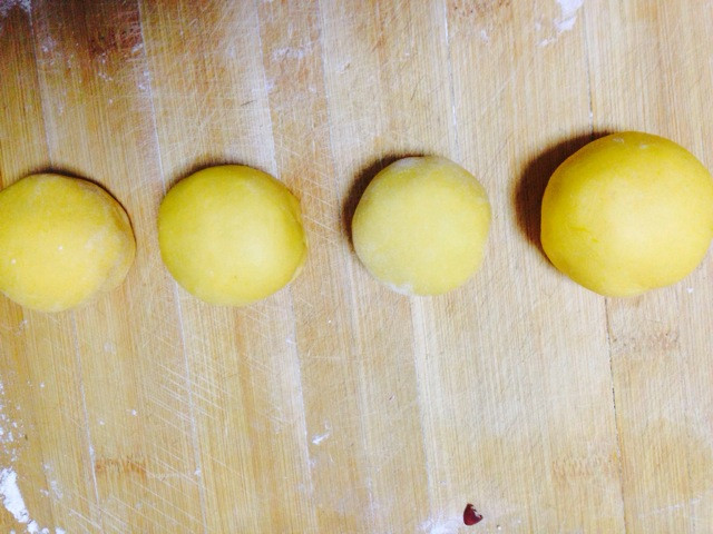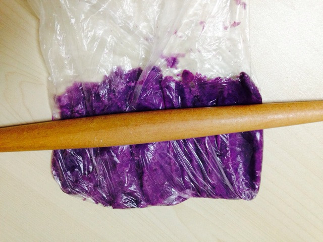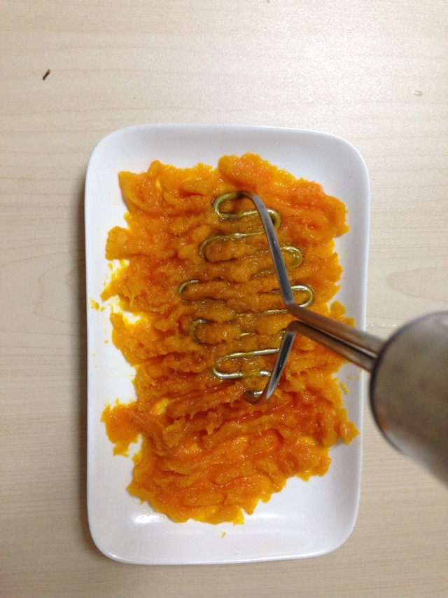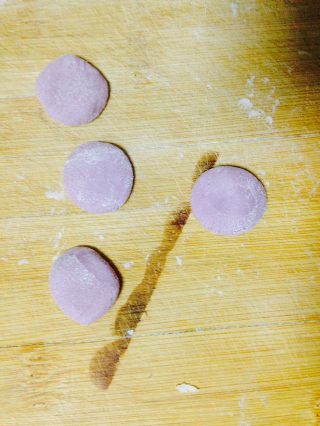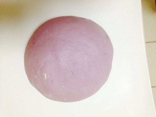 南瓜泥水份很大面团一般不用放水,紫薯泥很干要适量放点温水