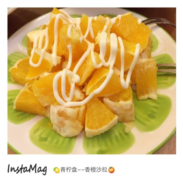 水果沙拉建议使用丘比香甜味沙拉酱,拌出来口味最佳,软瓶可挤压的包装最方便。沙拉碟和漂亮的水果叉很重要哦!选择青柠碟与橙子撞色搭配,清爽好看,赏心悦目。