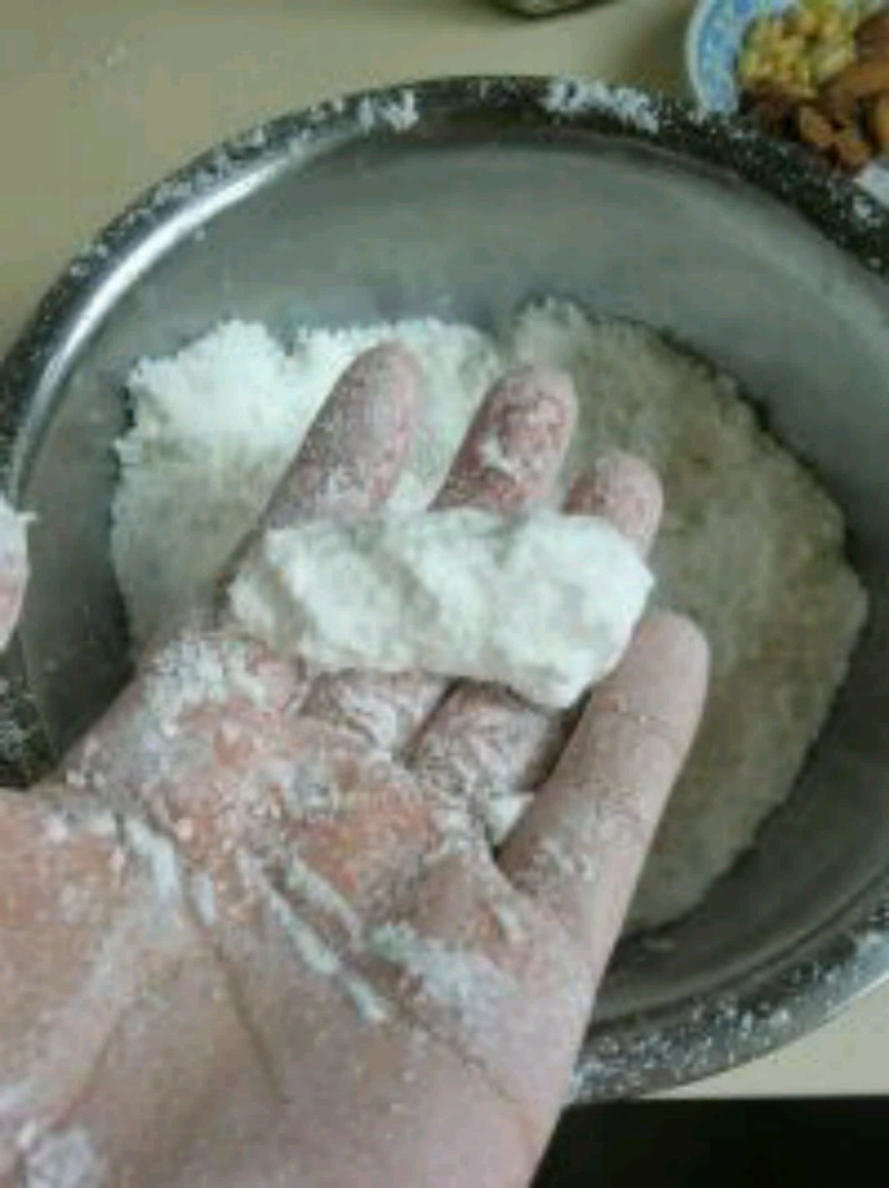 这里所用的米粉是我自己打磨的米粉,要把粳米用清水浸泡8小时,然后沥干水分在打磨成米粉。