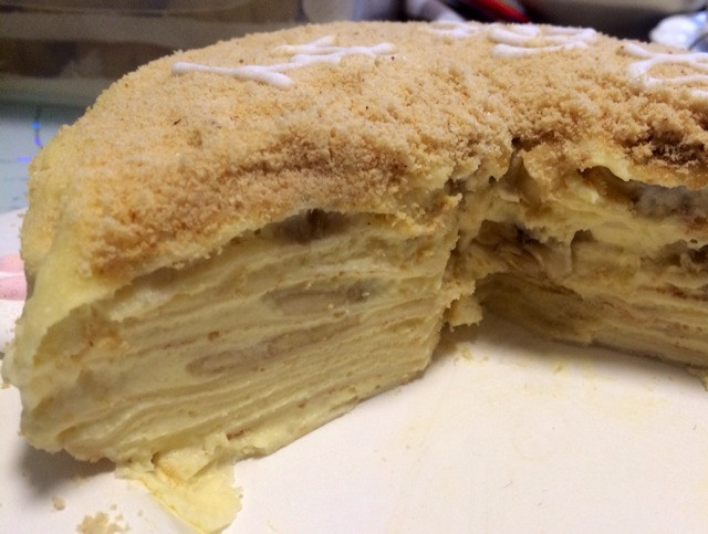 以下量可做一个六寸蛋糕。采用香草卡仕达奶油馅,吃起来如冰淇淋般口感的千层蛋糕。