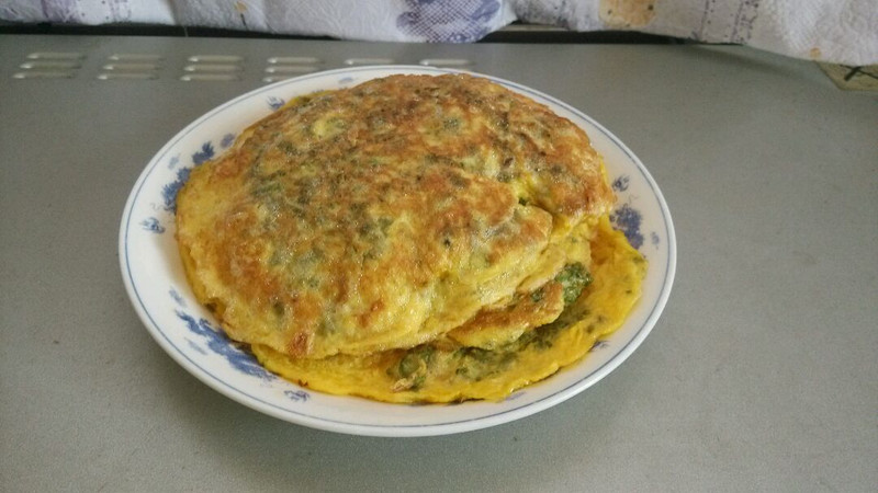 马桑花还可以炒肉、炒豆腐,但我最喜欢的还是煎鸡蛋,金黄的蛋饼中隐着翠绿的马桑花,颜色就清新,让人有食欲。鸡蛋的浓香和马桑花的清香,让人唇齿留香。鸡蛋的数量看大小,我用的是土鸡蛋,个头太小,用了六个。喜欢酥脆,蛋饼小一些,摊薄些,多煎几个。