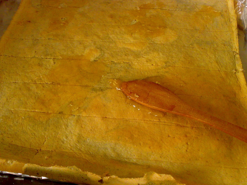 我玩烘焙都有几年了,但从没做过蛋糕卷的,总觉得很难,不想试,这次做这个双色蜂蜜蛋糕卷纯粹为了想参加蛋糕卷比赛玩一玩,但做的时候手忙脚乱的,蛋糕糊搞得到处都是,浪费了不少材料,以至蛋糕片是薄薄的一片,烘好后还忘了拿出来,直至晾凉都是在烘炉里的,这时候兴致已经大打折扣了,心里没想过会卷得成功的,但还是继续吧,取巧地在内里涂上点蜂蜜,一卷,居然成了!