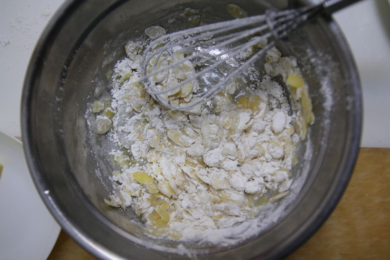 2、最后用勺背压平面糊时,尽量薄,杏仁片不重叠,越薄口感越好;