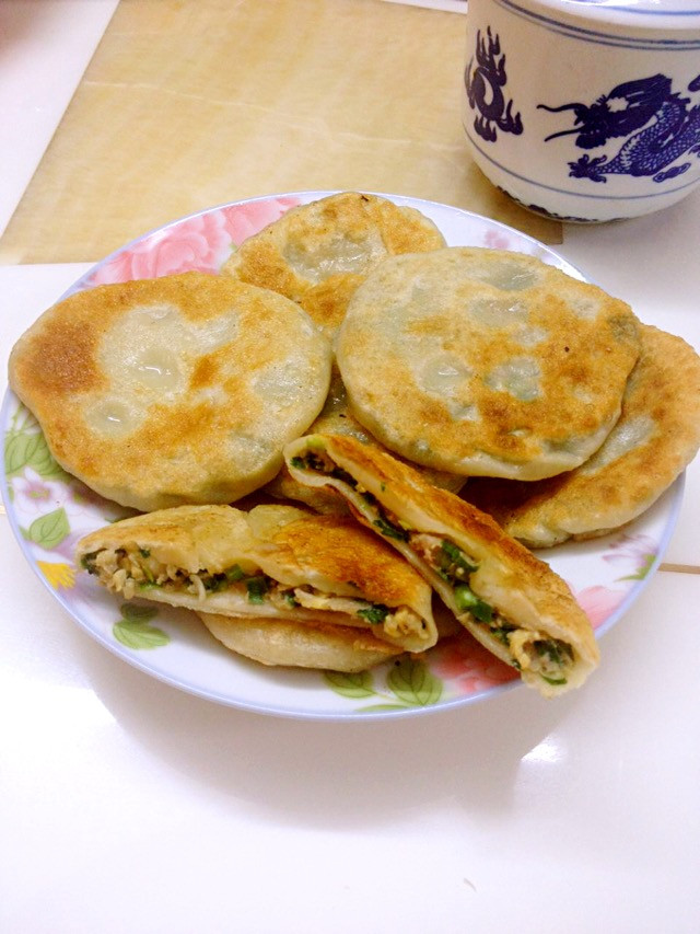 馅饼的面很重要。全用烫面,面筋全断了,没有韧性;全用温水和面,烙出的馅饼会硬,所以将两种面混合,才能让饼皮软软的,有韧性。这是我第二次做了,虽然馅放的还是不够多,但已经比第一次好多了!如何包的皮薄馅大,不露才是关键,要多多练习哦!