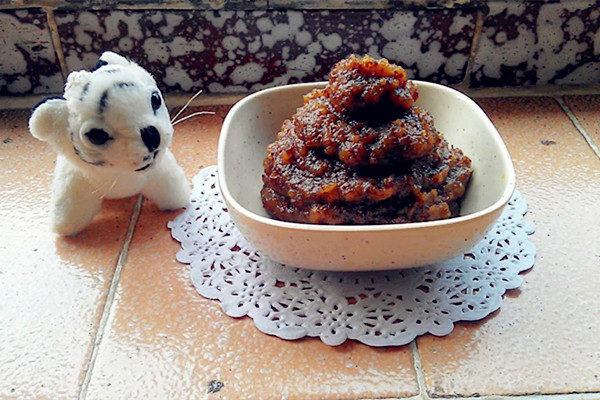 放进料理机时加的水量够打成稠状可以了,太多水的话炒的时间会更长。