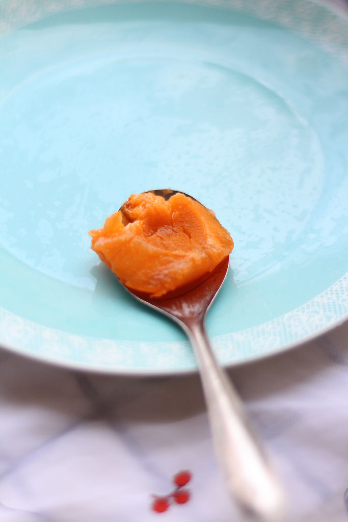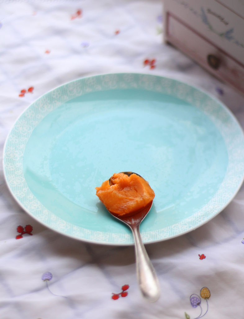 2、杏子一分为二一定要用水果刀子割,用手掰形状会被捏扁而且多汁。