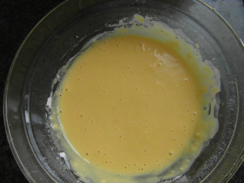 3,特别想说一下的是,鸡蛋的个头约在50克-60克左右。当时没有称鸡蛋的重量,就以“个”为单位做的。后来有一位食友说,用了这个方子蛋黄糊成了蛋黄面团,然后留言说这方子是骗人的。我自己用这个方子做了很多蛋糕卷,蛋黄糊一直是稀的,绝对没有成为面团的情况,所以后来觉得可能是鸡蛋的个头不一样吧。如果两个小鸡蛋黄,跟一个大鸡蛋黄重量一样,那么,真的会成为面团。