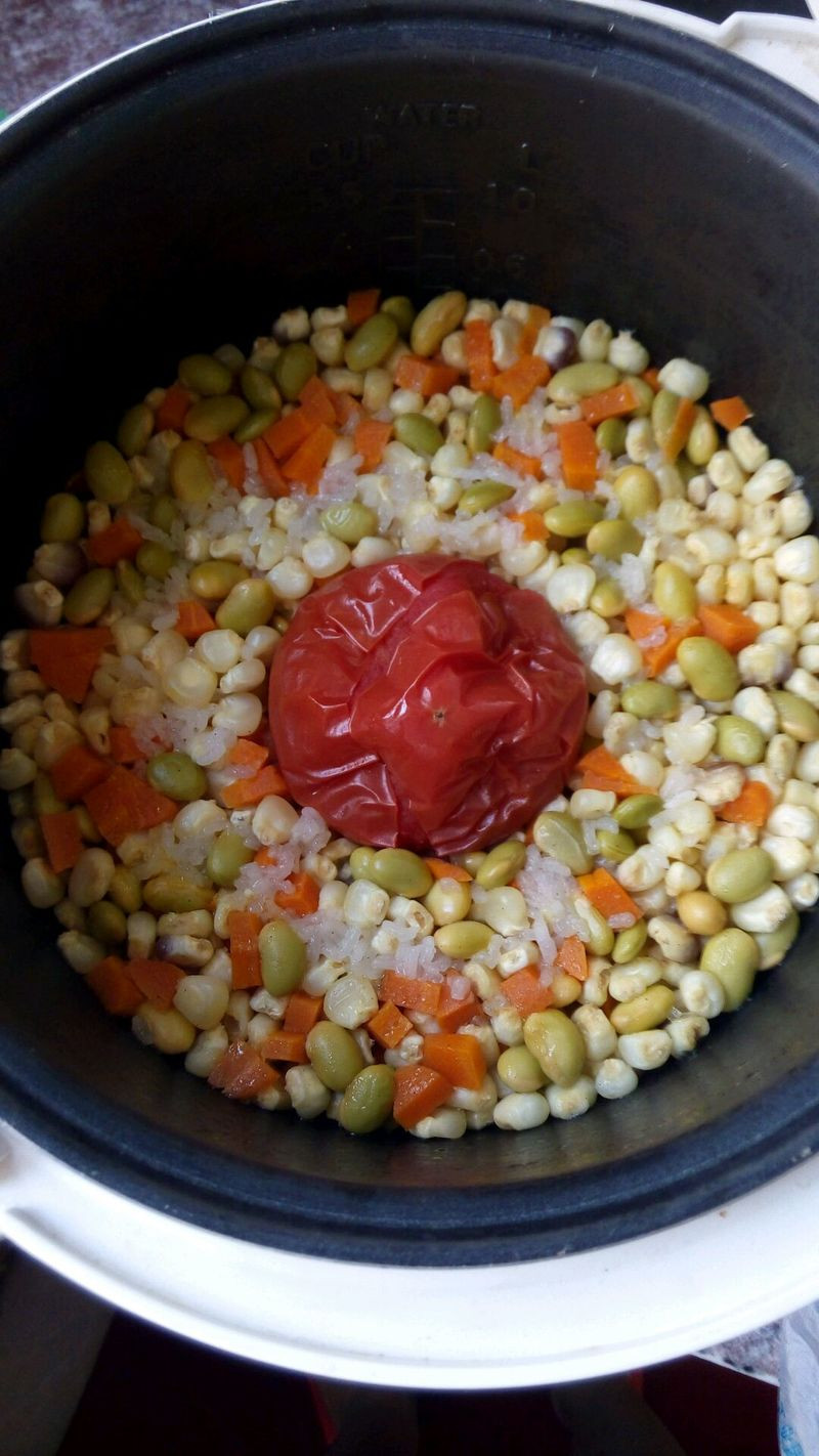 必须品西红柿、糯米(大米),其余食材根据个人喜好添加,调味品的量也根据所用食材的量酌情添加