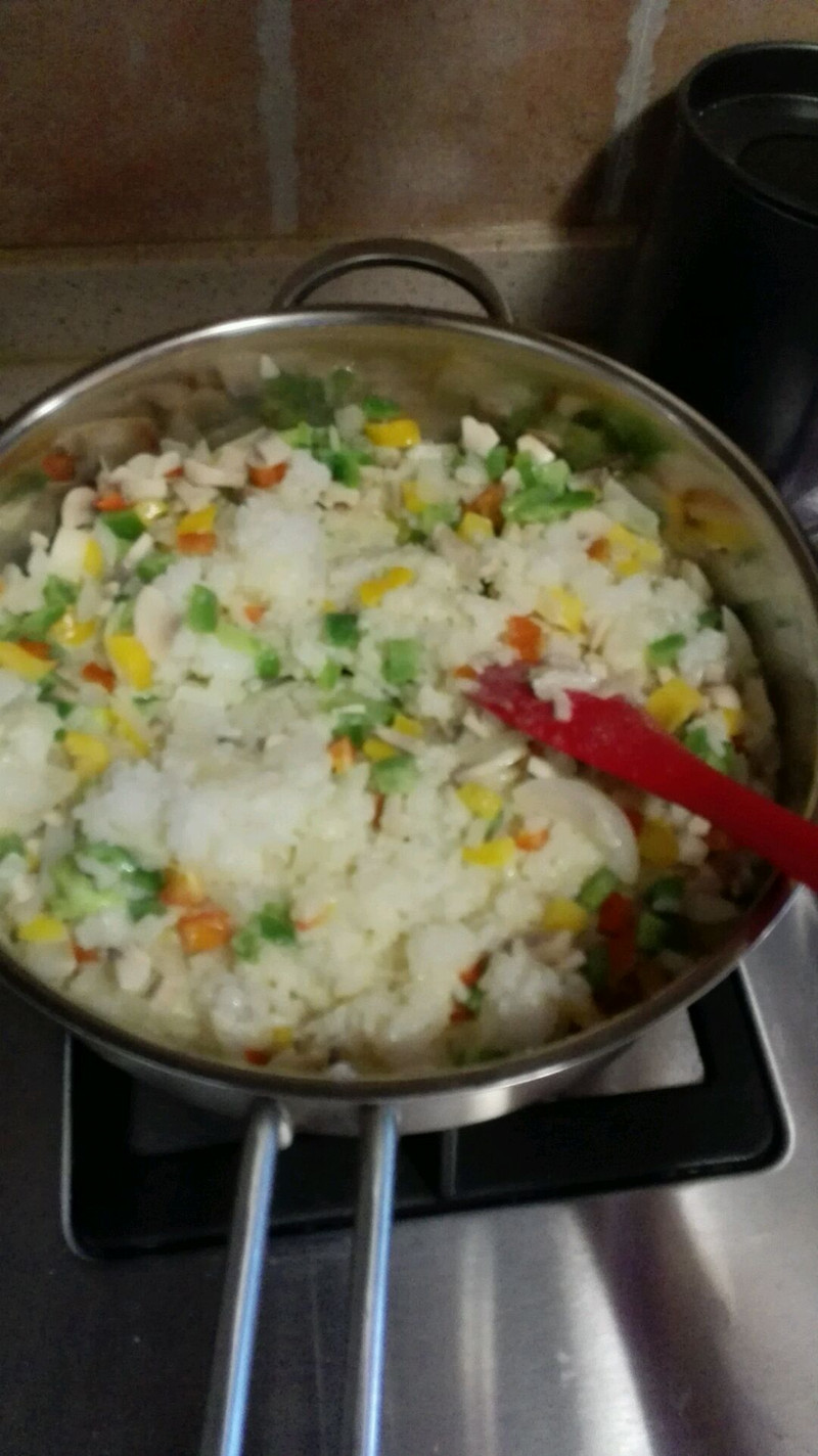 不喜欢吃硬米饭的可以如本食谱一样先把米饭煮熟了