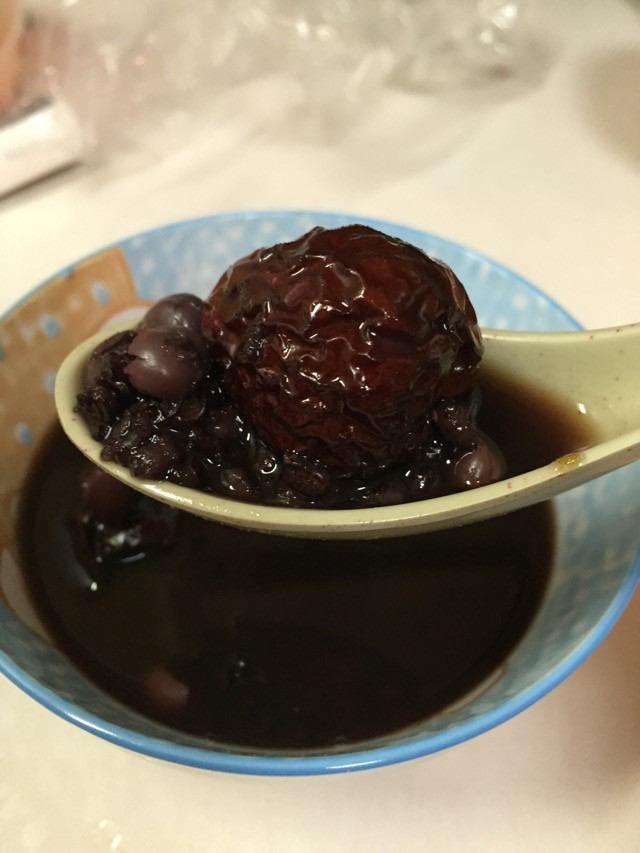 乘熬粥的空隙,可以把红枣洗干净,并且在每一个红枣上划至少两刀。这样可以让红枣吸收粥里的汤,红枣里的营养也可以融入粥里。如果有足够的时间,可以把红枣剖开成两半,把核去掉,这样更好。我偷懒了,哈哈~黑米补血养颜补肾粥的烹饪技巧