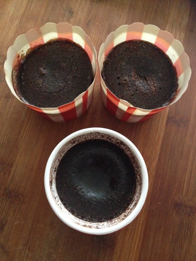 这款蛋糕最要注意的是烤的温度和时间,高温短时间。如果当下准备好巧克力混合酱,马上烤,那210-220之间的温度,烘烤8分钟即可。如果冷藏了一段时间或是一个晚上,那就要增加烘烤时间,大概10-12分钟!大家可以隔着烤箱观察,看到蛋糕中心稍微变硬即可关了烤箱,将蛋糕放在冰箱2-3分钟,利用烤箱的余热最终定型。