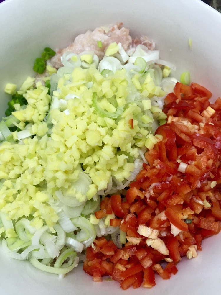 虾是自己买活虾剥的,虐!谁叫爱吃呢。别怕油太多,特别肉瘦的情况下,油少干巴巴的不好吃的。水也是,加一点点。