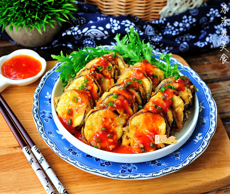 鱼香茄盒是一道传统美食,茄子切成茄夹塞以肉馅,外面裹上面糊炸制而成,除了外酥里软的美妙口感外,香浓酸甜的鱼香酱汁才是它的灵魂。