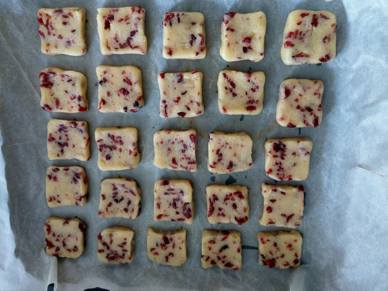 学做烘焙以来,什么都弄,反而是这个最简单的蔓越莓饼干,从来没有做过,原因是我不太爱吃饼干。最近上班老是饿得慌,吃货不能饿啊,一饿就手脚发软。所以打定主意,要做些饼干放办公桌上,饿就吃。谁知,拿到办公室,就被一抢而空,大家反应还不错。我喜欢蔓越莓,所以放多5克。黄油用总统,非常香!