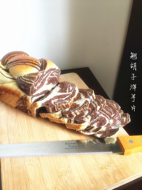 吐司和椰蓉吐司都尝试过了,所以要挑战新的高度,巧克力口味的大理石吐司,在原来奶香吐司的基础上加入了可可粉,简直好吃的不要不要的,不仅可以吃还能用来捏,捏完还可以弹回来,哈哈~