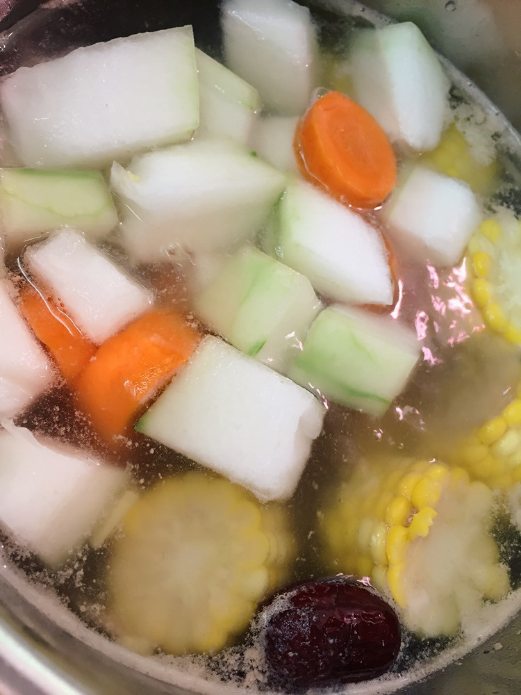 今天流鼻血,到了中午正好想起好久没煲汤了,就让麻麻帮忙买了材料,自己磨刀嚯嚯准备着,因为家人不爱吃鸡精味精什么的,所以就要用材料来调味让汤鲜美。