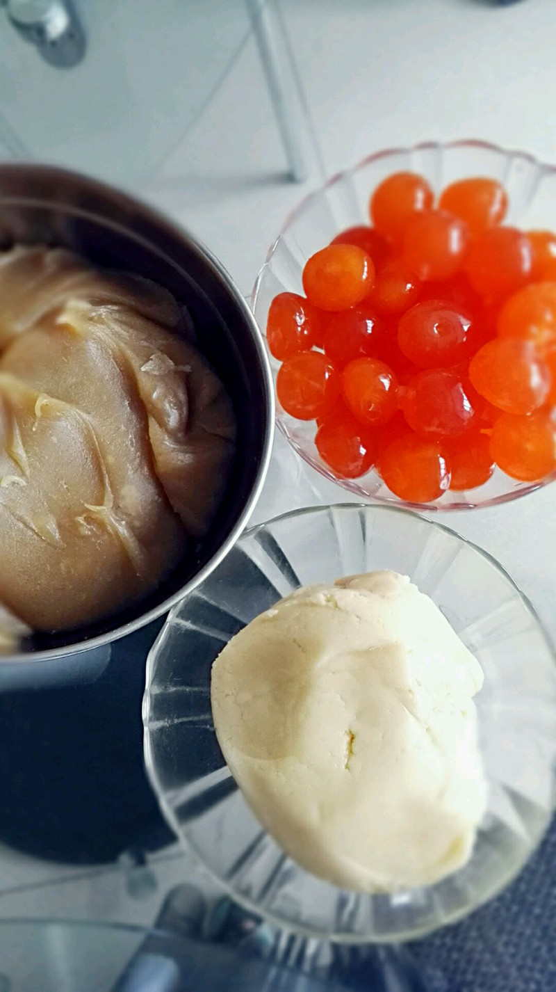 我一次做得比较多,配方是40个100g的量。不需要这么多的按比例减少即可。顶级月饼师傅能做出皮馅比例1:9,咱不是顶级,能做出2:8就不错了。