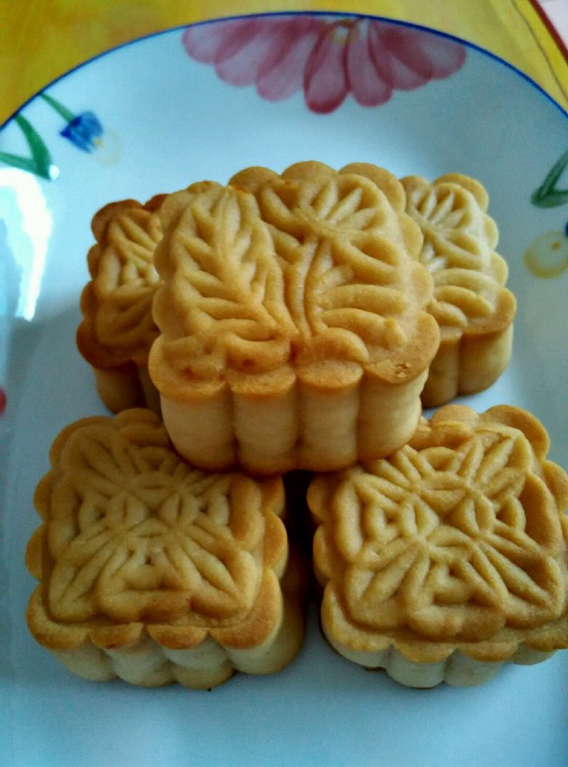 有几点要注意的:1.加面粉后一定要用翻拌的手法,以免起筋 2.面皮和馅料的比例可自行调整,我喜欢皮厚一点的就20:30,也可10:40,或15:35,总之总量是50克就行 3.进烤箱前喷水是为了防止温度过高饼皮开裂,但切记要远距离少量的喷,喷多了花纹就容易花掉不清晰 4.如有刷蛋液,也只能用毛刷沾少许蛋液薄薄地刷一层,要很薄很薄,刷厚了也会影响表面图案成型 5.刚出炉的月饼是硬的,密封保存一两天后回油了就好吃了,所以不要着急着吃,请耐心等待吧!