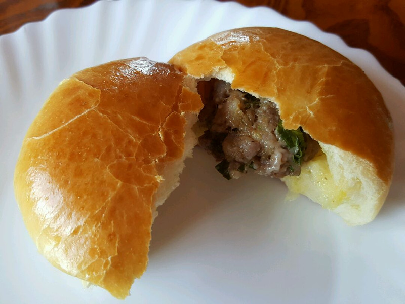 揉好面醒大约40分钟,整形,每个60g,包入肉馅,再醒40分钟,焗180度上下层15-20分钟,面包每个大约60g,鸡蛋刷面包面.