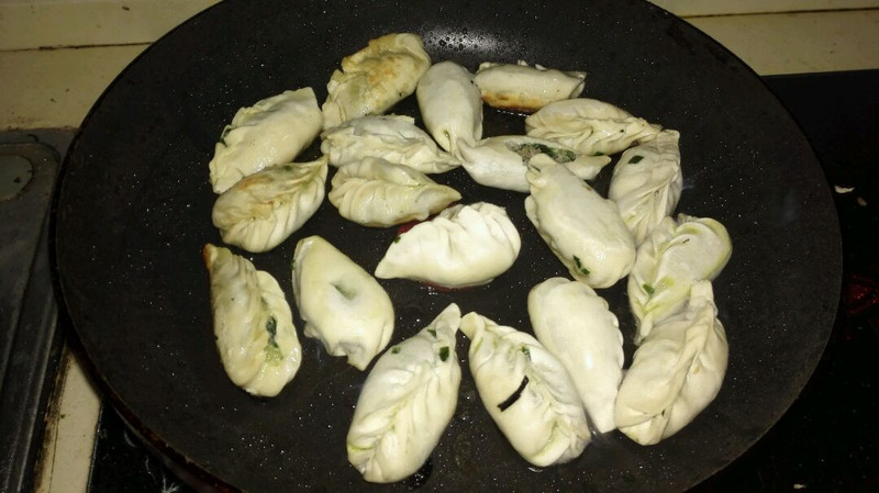 先前包好的饺子放冰箱,今天不想做饭就拿来煎吧煎吧吃了。超好吃啊,撒上点椒盐,孜然更是极好的。