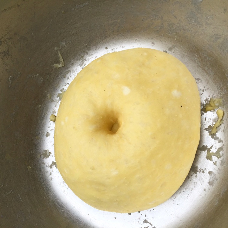 当面团发酵至两倍大,且用手指戳进去不回缩时第一次发酵完成