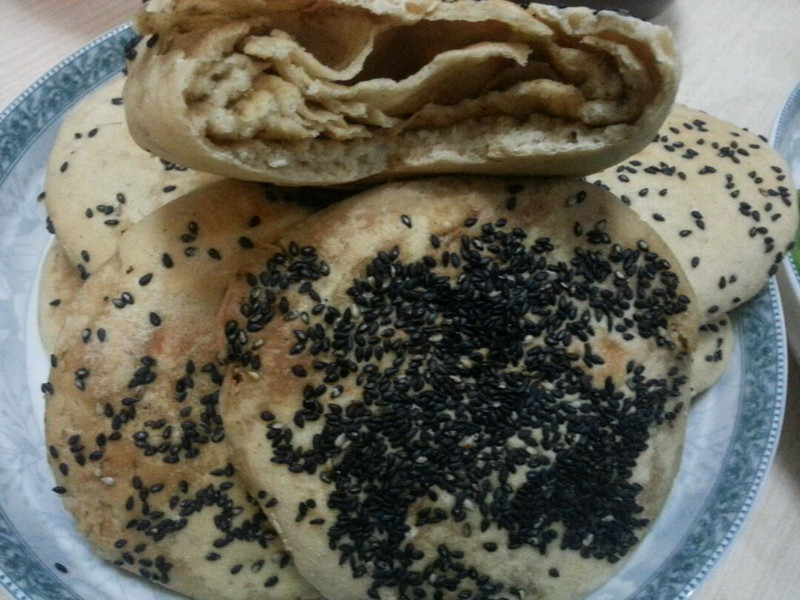 擀的面皮不要太薄,4至5毫米厚,太薄会露出麻酱。麻酱可以再多刷点,我这个量几乎没有咸味。面要比饺子面还要软,尽量软,否则烧饼太硬