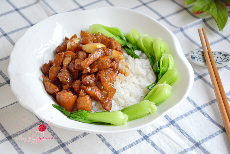 今天做了卤肉饭。肉烂且筋道,还有浓浓的肉汁;小油菜碧绿清淡,正好补充了维生素,还能中和一下肉的浓郁。 白米饭舀上一大碗,稀里呼噜的一大碗就进肚儿了。其实无非就是换了一种装饭的方式, 吃起来却喷香无比。