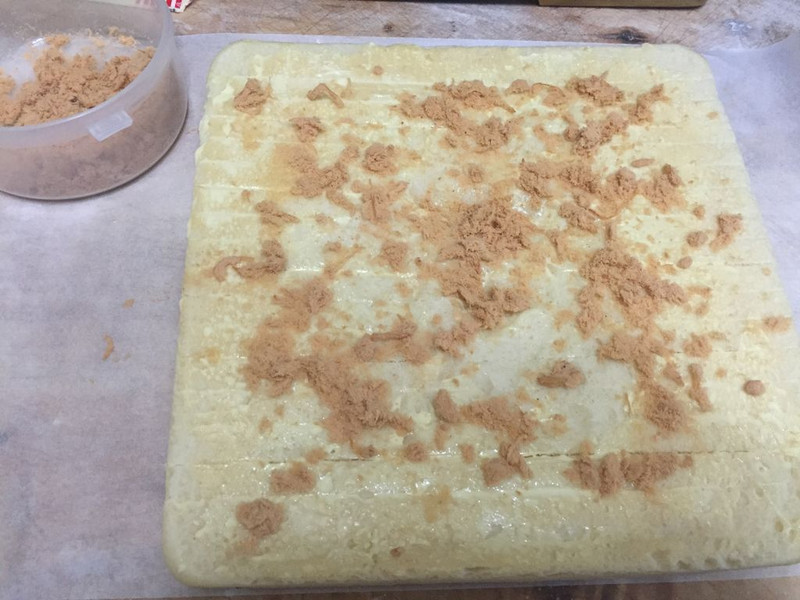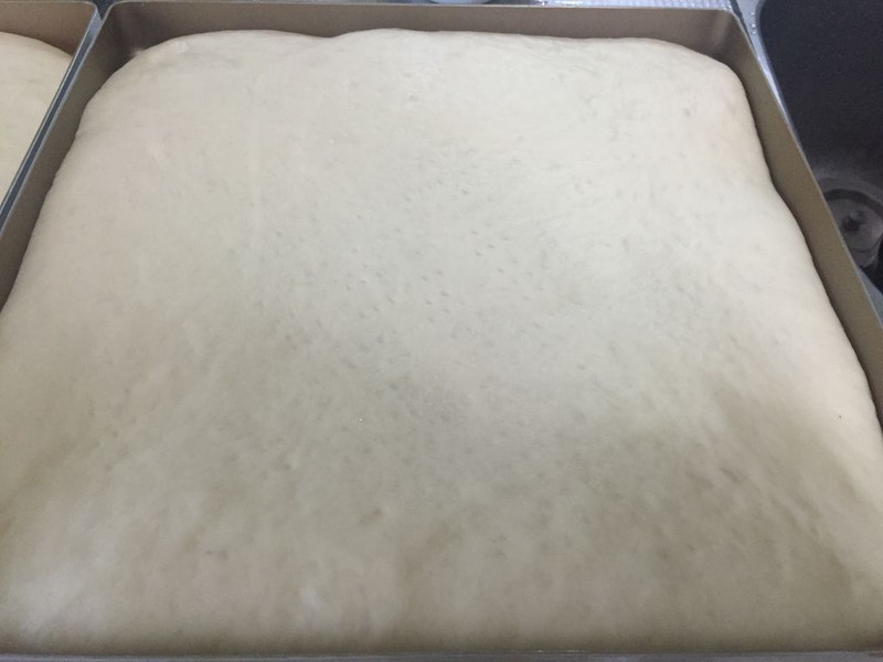 ps:此配方可以制作两条面包卷,面包盘大小是28*28的正方形烤盘,如果用我写的这个分量,一定要有两个烤盘