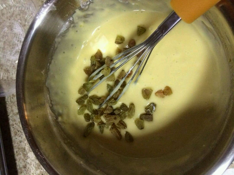 参考总量:6个,烤箱不一样,15分钟后多看看颜色,再用牙签插一下,拉出来干净就好了,葡萄干可放可不放,换其他食材也可以。