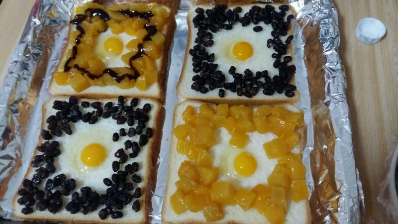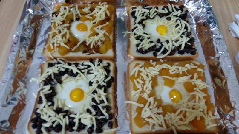 ①所有土司片上的配料都是随自己喜欢,所以我都打上了备选,步骤图里只有黄桃芝士和蜜豆芝士的图,根据自己喜欢可随便搭配,比如金枪鱼和玉米粒,小番茄和香肠,再淋上自己喜欢的酱料,搭不搭马苏里拉芝士都随自己~②中间不建议放一鸡蛋,太不好熟了,鸡蛋熟了土司也糊了,所以鹌鹑蛋又小又营养比较合适,不喜欢的也可以不放,直接铺满自己喜欢的食材也是极好的╮(╯▽╰)╭③微波炉也可以做这个,但是时间上要自己把握④马苏里拉芝士不要烤太长时间5分钟左右融化就可以轻松拉丝~⑤罐头水果需要炒干水分再铺上去。⑥题目里的开放式意思是随意搭配。