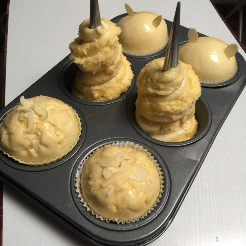 包好收口,收口朝下放入纸杯模具中,这是准备做小鹿的,我做了三种不同造型,大家可以都这样做成小鹿的