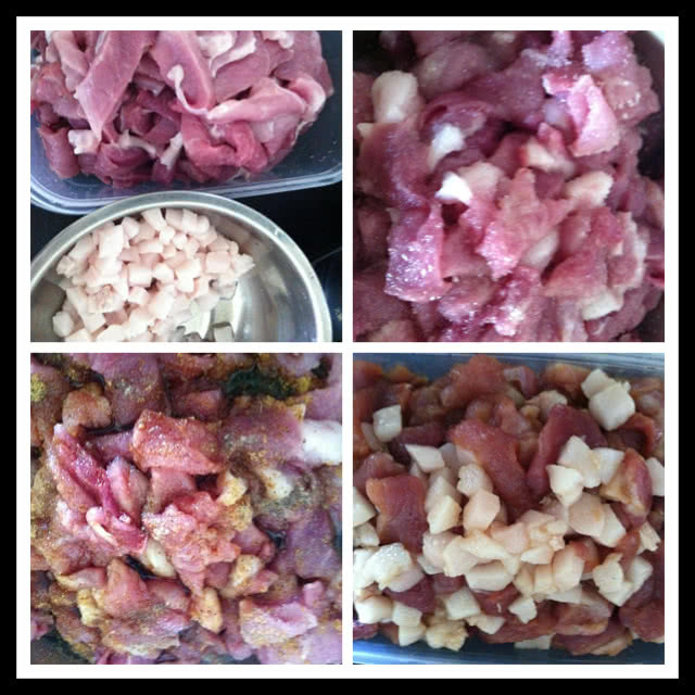 准备的主要是猪肉肥瘦2;8的比例,盐,糖,酒,少许辣椒粉很简单的,根据个人喜好也可以尝试添加其他香料适合自己的口味。每次灌的量不同,可以按照肉和盐糖100;3的左右根据个人的口味比例调配。我习惯是淡一些的,我也不是很能吃辣的,所以一般口味淡一些。