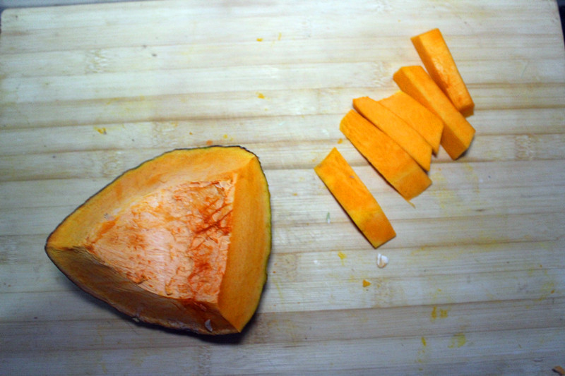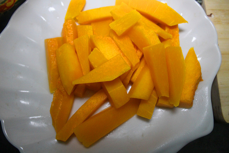 如果用油炸,南瓜表面要撒一层干淀粉。