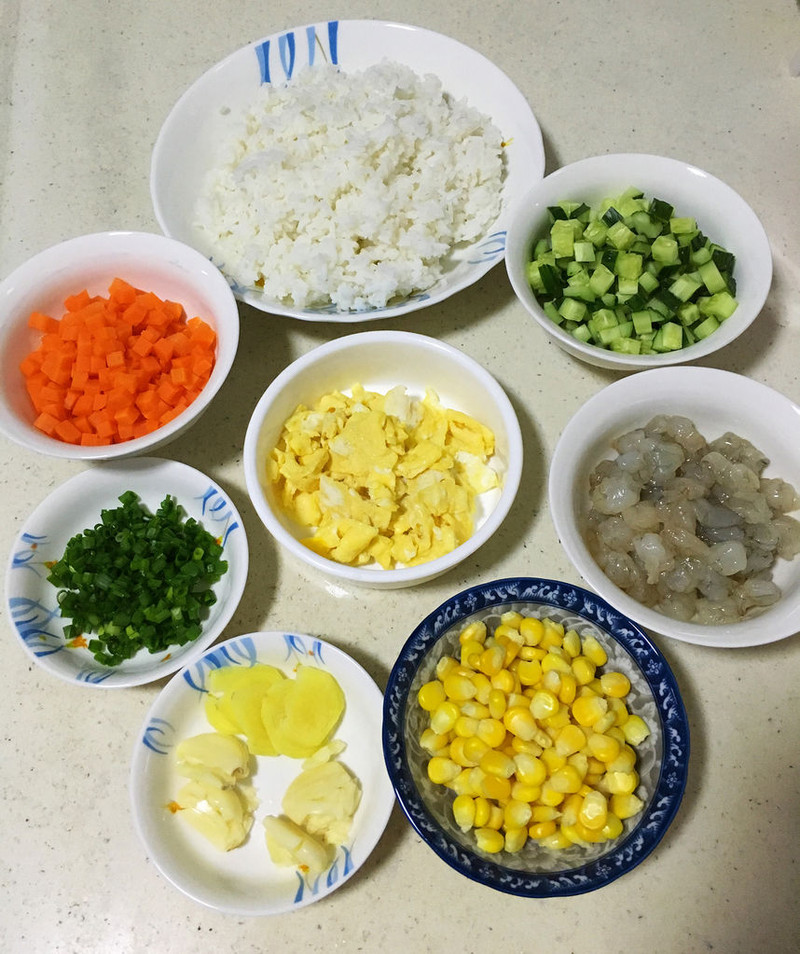 炒饭,时不时吃上一口,总是感觉很香很香的。而且炒饭里面的各种配菜还可以随意搭配,既吃得过瘾,又有全面营养,一举两得呢!按照食谱要求来说,我得把食材用量写上,但是我真的很想说,大家有多少米饭就放多少米饭,想放什么菜不想放什么菜想放多想放少都随意、随意、随意!说了这句话真和吃了炒饭一样痛快啊,哈哈!