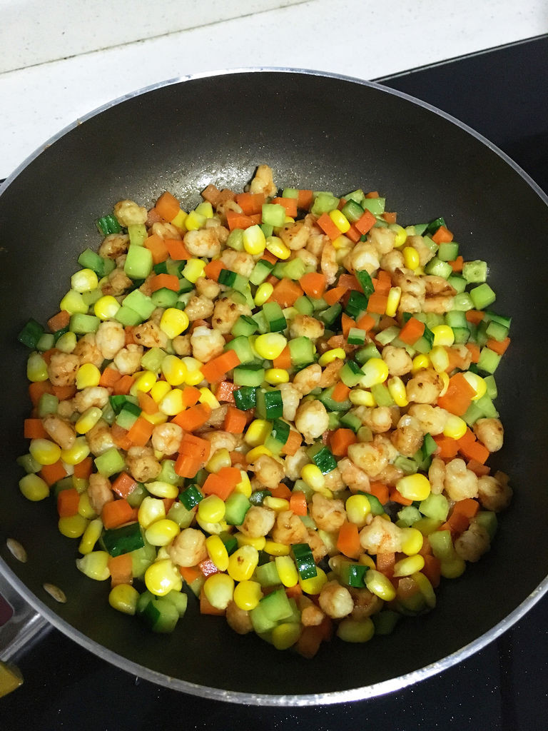 4、这份炒饭很适合小朋友吃,清淡口味,食材却很丰富,营养全面。
